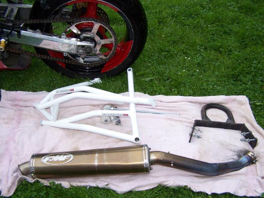 no title, stunt set up 636. Powers race rails and/or SI cage, roundbar, ZX-10 front end, woodcraft rearsets, Polished frame, + 15 Geared steel chrome sprocket, 2 tone powder coated rear rim, mint tank dent and vortex gas cap.