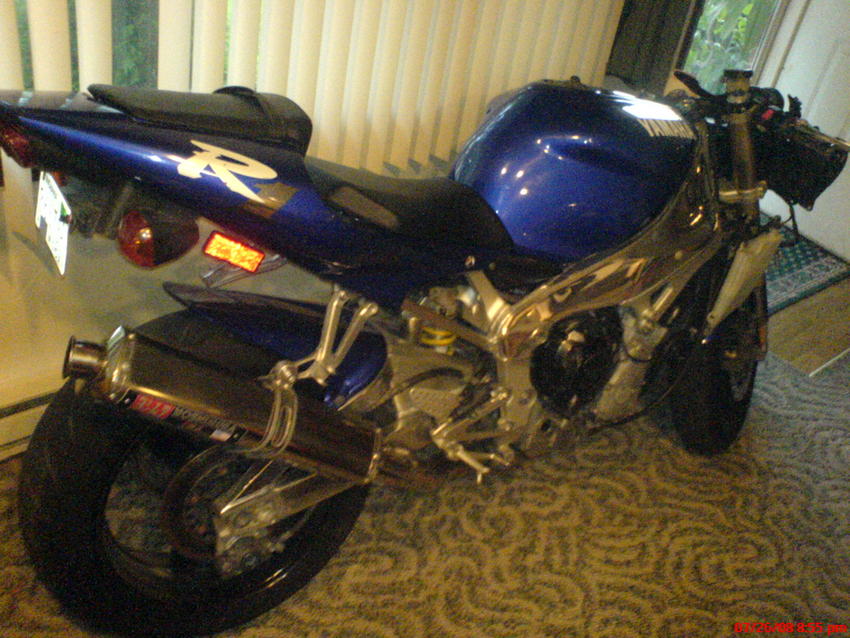 just no title in hand, who ever buys it can get it titled...as far as tranny, you can buy a motor off ebay for 500, and same as the plastics.... i have over 3g's in the bike, i'm not lookin to get that out of it but 1000 is a pathetic offer.. i posted 2000 obo.... i see bikes on here in terrible shape and run like **** going for what i'm askin for....1000 bucks put into the bike then is perfect, so if someone buys it for 2000 and puts 1000 into it then they have a perfect r1 for 3g's.. go take a look on ebay and r1 forum and see what they are going for