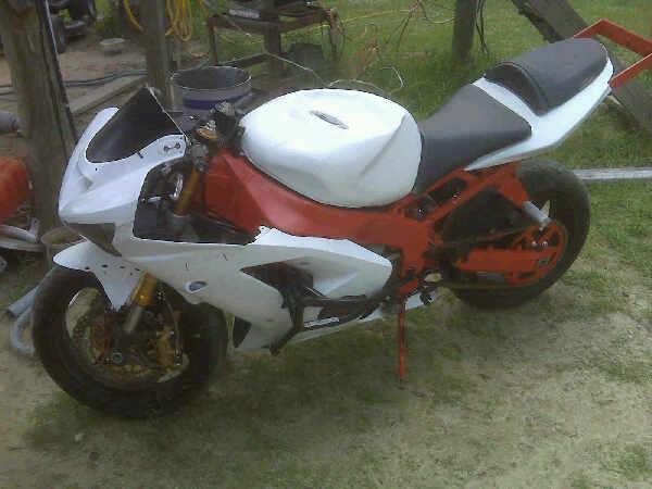 2004 KAWISAKI NINJA ZX6...CLEAN OHIO TITLE(BUT THE BIKE IS IN MISSISSIPPI)...BIKE HAS WHITE PLASTICS WITH ORANGE FRAME...THE PAINT NOR THE PLASTIC IS IN PERFECT CONDITION..HAS GOOD DENT IN TANK..GAS LID DOES NOT LEAK AT ALL...FRONT TIRE NEEDS REPLACING NOT MUCH TREAD LEFT...HEADLIGHT WORKS AND MOUNTS UP FINE..MAY HAVE A TAB BROKEN NOT SURE BUT DOESNT SHAKE OR RATTLE.BACK TIRE STILL GOOD..BIKE RUNS FANTASTIC NO ODD ENGINE NOISES..PLUGS FEW MONTHS OLD..HAS STOCK PIPE..THE FAN IS WIRED UP DIRECT TO A SWITCH SO IT CAN BE TURNED ON/OFF WHEN NEEDED..THATS BOUT ALL I CAN THINK OF..HIT ME UP IF INTERESTED..6014087353 SCOTT....IF YOU HAVE ANY QUESTIONS JUST ASK HIT ME UP ON CELL..I DONT GET ON HERE TO MUCH..CAN SEND MORE DETAILED PICS THRU PIC MESSAGING OR EMAIL...THANKS