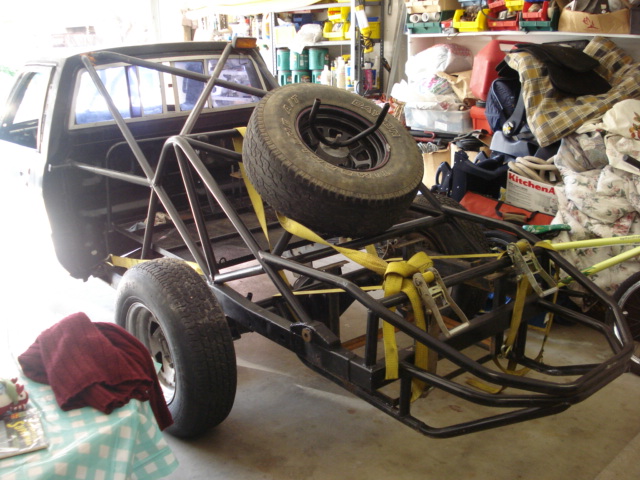 this is a 1987 toyota pickup. its caged from bumper to bumper as one. long travel uniball kit ( not cheap ). i have 12" fox coilovers. four spare tires. extra windshield and back window. 22r engine and tranny. low back bucket seats with four point harnesse. front and hood fiberglass.