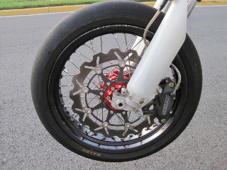 -Maxxis race slick tires, Presa S/M on front and Goldspeed on rear