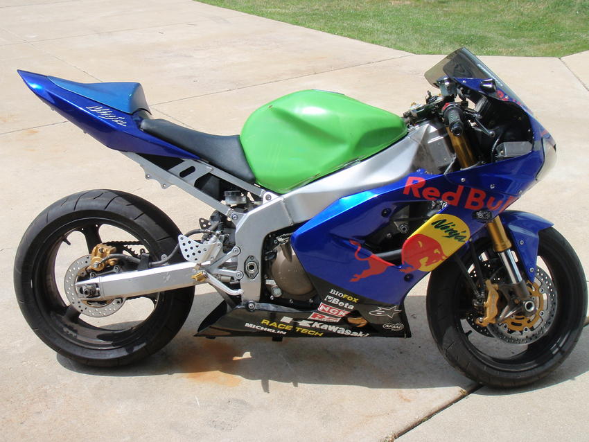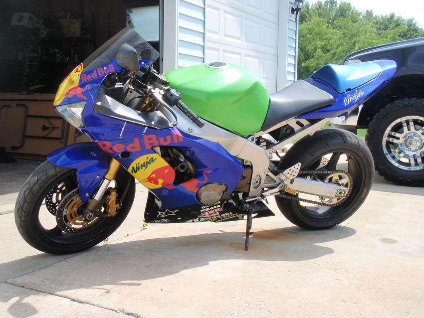 the zx6rr is 599cc has a slipper clutch, mount welded on the left side frame for a steering dampner, and adjustable swingarm pivot points....still a great stunt bike