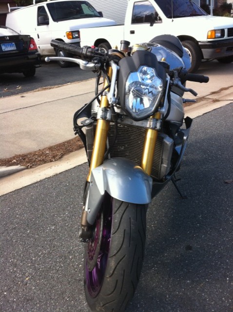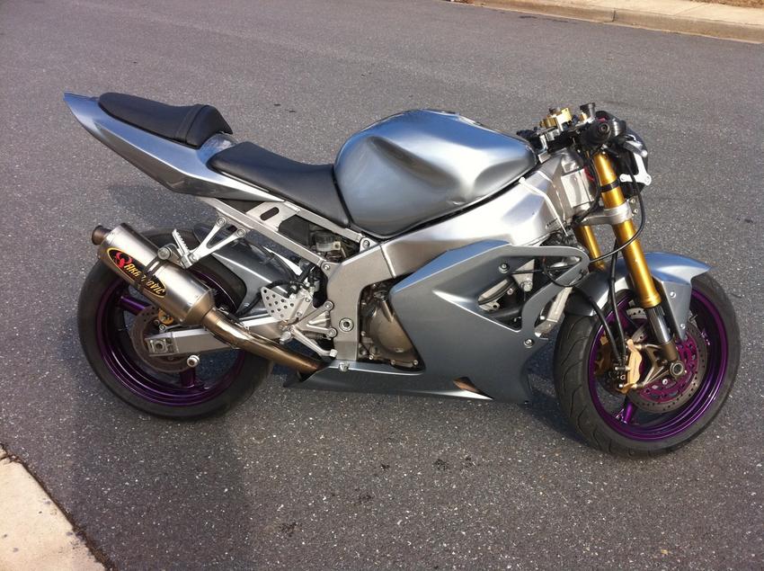 About the bike I bought it from a friend about 8 months ago wreaked. It was all cosmetic damage ONLY, Had no bent forks, frame, wheels, ect drives straight and runs STRONG.. My friend looped an endo avoiding a car that pulled out on him. He's ok but the bike still hit the car and did a mini death row. Bike comes with a clean title & was never reported to insurance... When i bought it it had about 9xxx miles on it now its got about 13-14xxx miles. Cluster was destroyed came with no tank, fairings, or levers, clip ons, rear sets. Bascilly it was a rolling chassie frame, motor, wheels, forks, new tires, rotors, pads all around thats all i got.