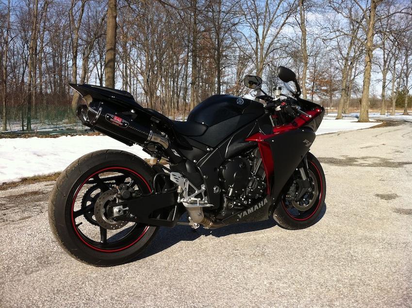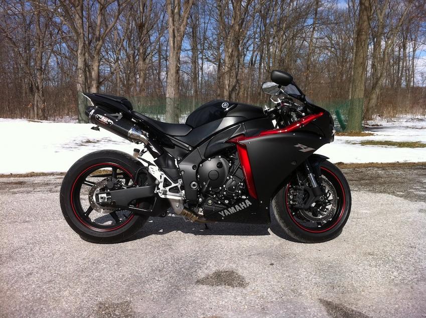 2009 yamaha yzf r1 raven edition - 1400mi/ 2000kms - crossplane crank- yoshimura trc carbon fibre cans / y pipe, PCM 5 w/ autotune module, roaring toyz lowering link , k&n air filter, hotbodies smoked flushmounts/ windscreen, customled integrated taillight, asv levers a few other things. I'm open to offers but dont bother with lowballin im in no hurry to sell. its got stupid amounts of torque, fast as hell- get compliments everywhere on the sound. Bike is barely broken in. Lookin for a stunt ready bike - street fighter or full fairing f4i, 636, gixxer- I'm open to any offer plus cash. Bike is in Windsor Canada across the bridge from Detroit. Might sell exhaust separate if anyones interested.