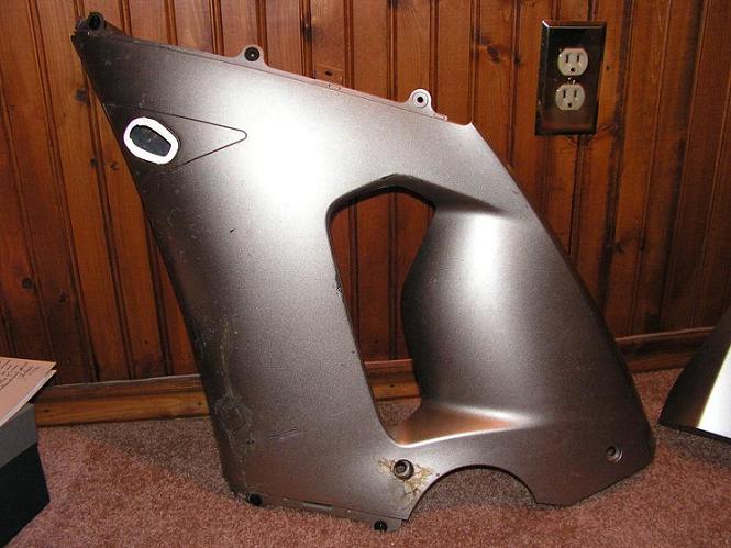 this bodywork came on the salvage bike i bought last year and turned into a race bike. I repaired them with plastic epoxy. they make great stunt plastics or trackday plastics. the set is titanium and comes with the L/R mid, L/R lowers (bellypan), headlight with scuffs on it. covers that go under the clip-ons. they are not very rashed mostly just cracked from the accident, he layed it down in the grass.