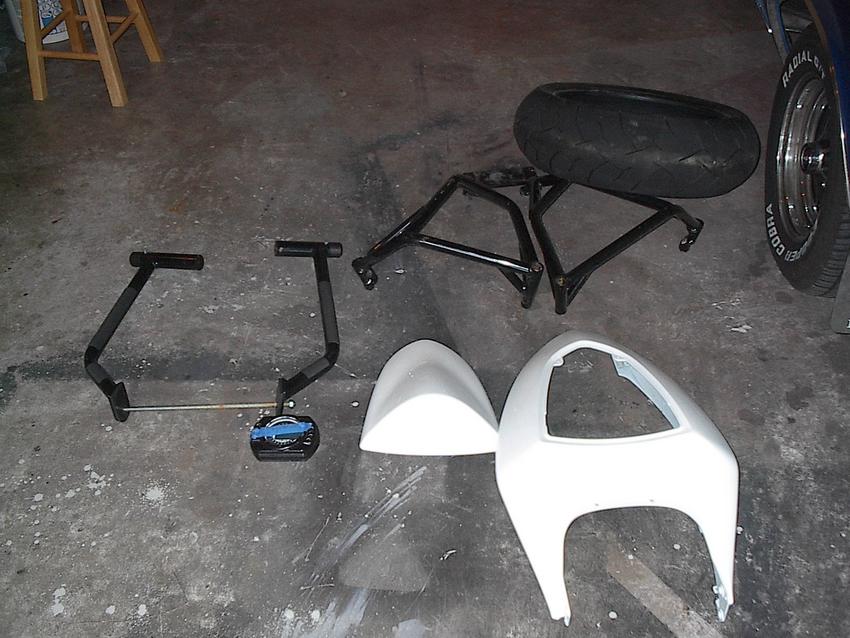 Not pictured...I have available a Fiberglass street Front fairing (in white gel coat), "ram air" covers (even though the ram air is central on this bike you know what I mean) A mint Plasma Blue front fender with some white stickers on it that are clear coated on . Make offers on these...