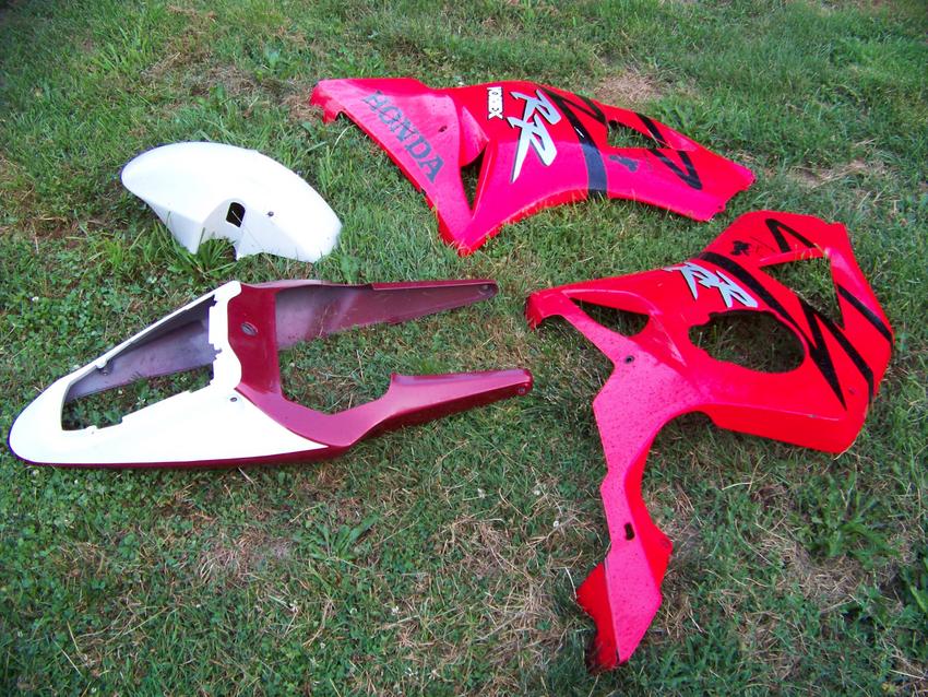 Cleaned the garage and found a set of good fairings i forgot about from my 954. Sold the bike awhile back so dont need these unless i come across a deal on a stunter or wreck that needs plastics i can flip. Peices are in nice shape stock honda not cheap china stuff. Right fairing got a little scuff on the very bottom on sticker otherwise everything is real nice no cracks or busted tabs.