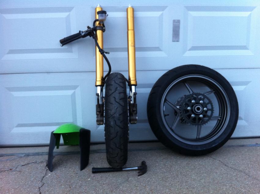 Forks with brake calipers hoses and master cylinder/right clip on assembly