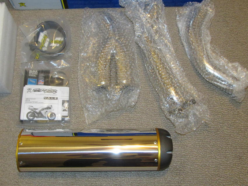 for 190 shipped. It is the M2 Vale exhaust and it will eliminate the bulky dual undertail exhaust that comes stock on these zx10's. It also comes from two brothers with a fender eliminator kit, tag lights and everything you need for the install. I am paypal verified and my email is freestyle_technician at yahoo.com If you have any questions or need more pics let me know. PS- Exhaust is still selling new for 550.00 + or - so get a deal while you can. I no longer need exhaust because i plan to sell my bike.