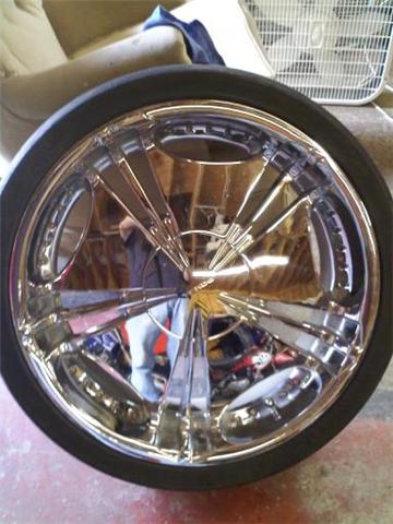 they are 22 by 8.5 5 lug universal needs tires and one of them has a cut on the wheel but none of them are bent i just took them off my car i will take $8oo