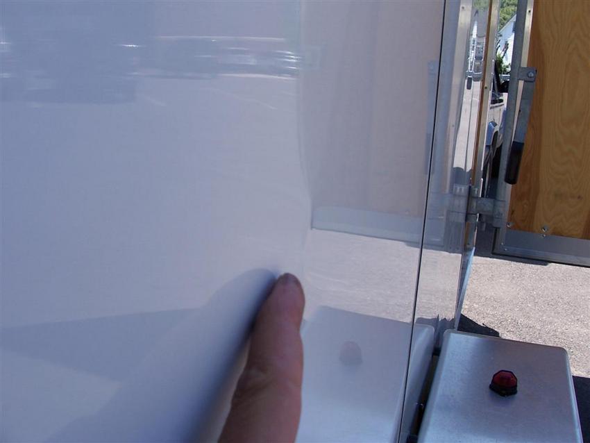 There is some slight damage to the trailer's inside walls. (See Pics) And a small dent to the passenger side trailer outer wall from the inside. (See Pics)