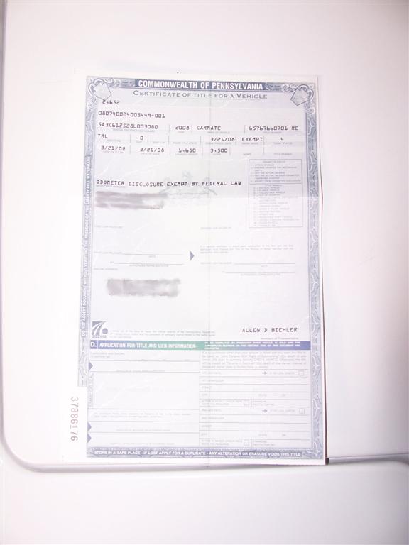 This trailer was barely used. I ordered it brand new and picked it up in March of 2008. Carmate trailers are the "Cadillacs" of the trailer world. They come with a nice list of standard features: