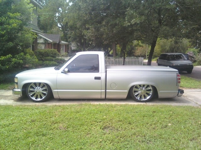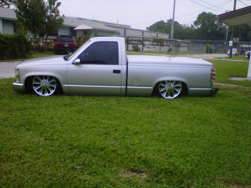 have a 98 bagged chevy. Everything is done on this ride. Get in and drive. full interior. 3 link suspension with bags front and rear. Sway bars are still in place for ride comfort . No leaks at all runs great and ac. Twin compressors and a nitrogen tank thats already mounted if you wanted to run it on the air system. Tru lays frame on 20 inch wheels. leather buckets and a console that folds into a 3rd seat if need be Needs nothing. feel free to ask any questions you have. You wont find a nicer cleaner bagged truck in jax .. some trades considered just ask