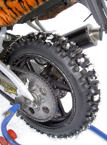that is so cool,man dirtbike tires w/screws its almost like youd have to have a bike for the winter and one for the summer ,or do you just switch it all back over?