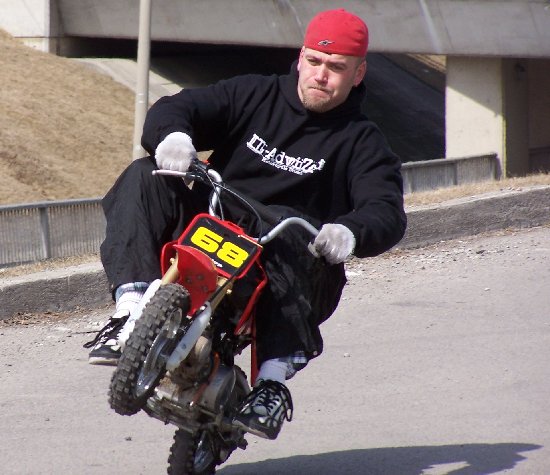 Thats why you gotta rock the 50 in the winter to keep you on your game Reg! Im already better than I ever was on the big bikes after 3 days on the new stunt bike, Its all back break control I learned on the fiddy.