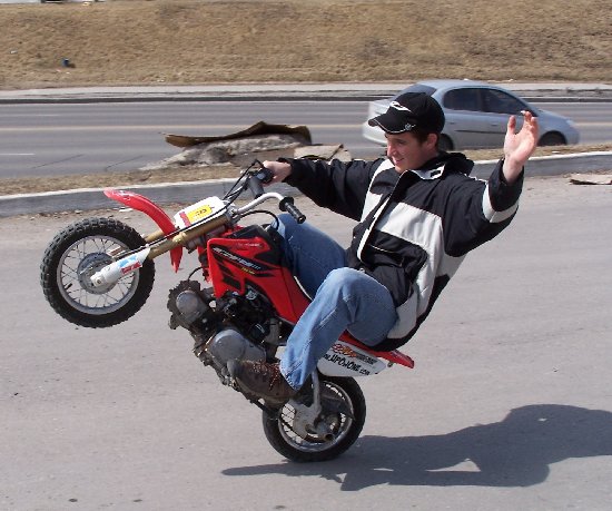 I always rip the road in front of my house, I wheelie all the way around the block for S*** and giggles.