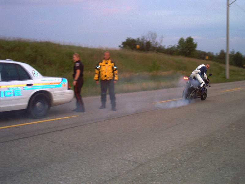 Where is the pic of me standing on the tank by the cop??? Is that all the pics you got?? All I saw all night was flashes!! Any pics of me scrape ‘in??? Do I want to know what the officer did the billy club while all you guys were against the car???