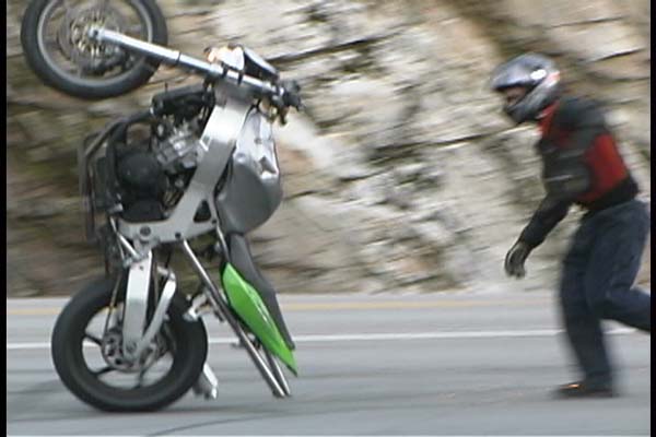 Bills first day with a bar.2nd day trying slow wheelies.scraped then crashed. maybe I should get him on hear to argue all day how good he is.LOL. ego check...