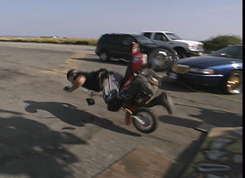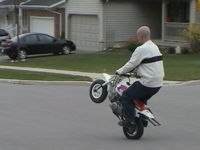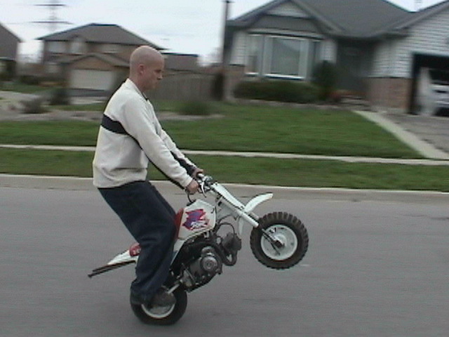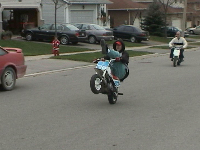 HEY............. Martin, notice, not ski jumpin.... and you must have been quick to get those shots off teh camcorder,,, considering you only wheelied it for about 3 10's of a second, then bailed.. LOL